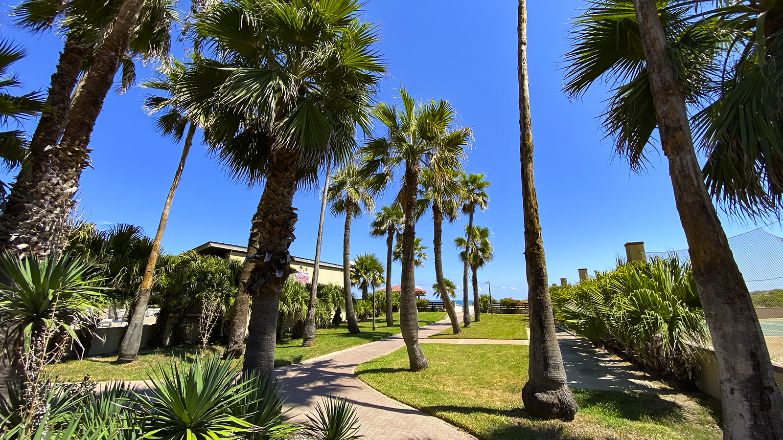 Ein kleiner Spaziergang durch den palmenbesäumten Garten und man steht auf dem weißen Sand.