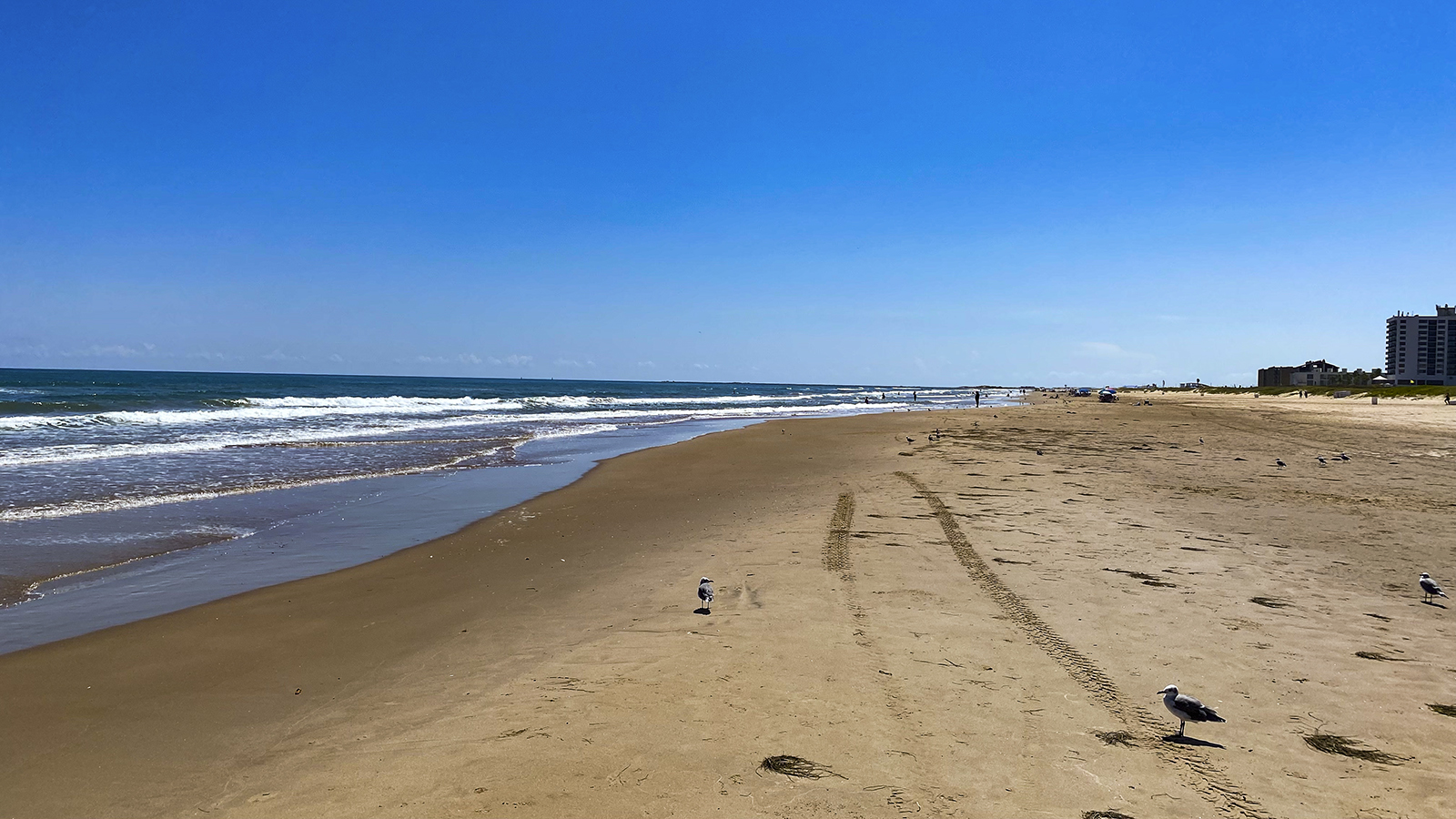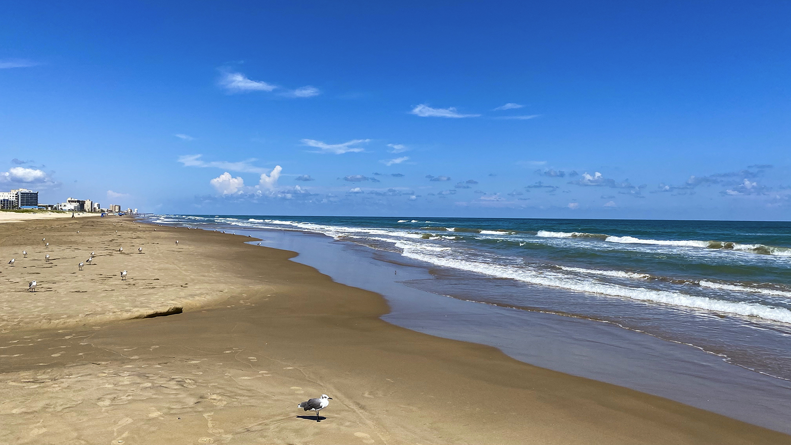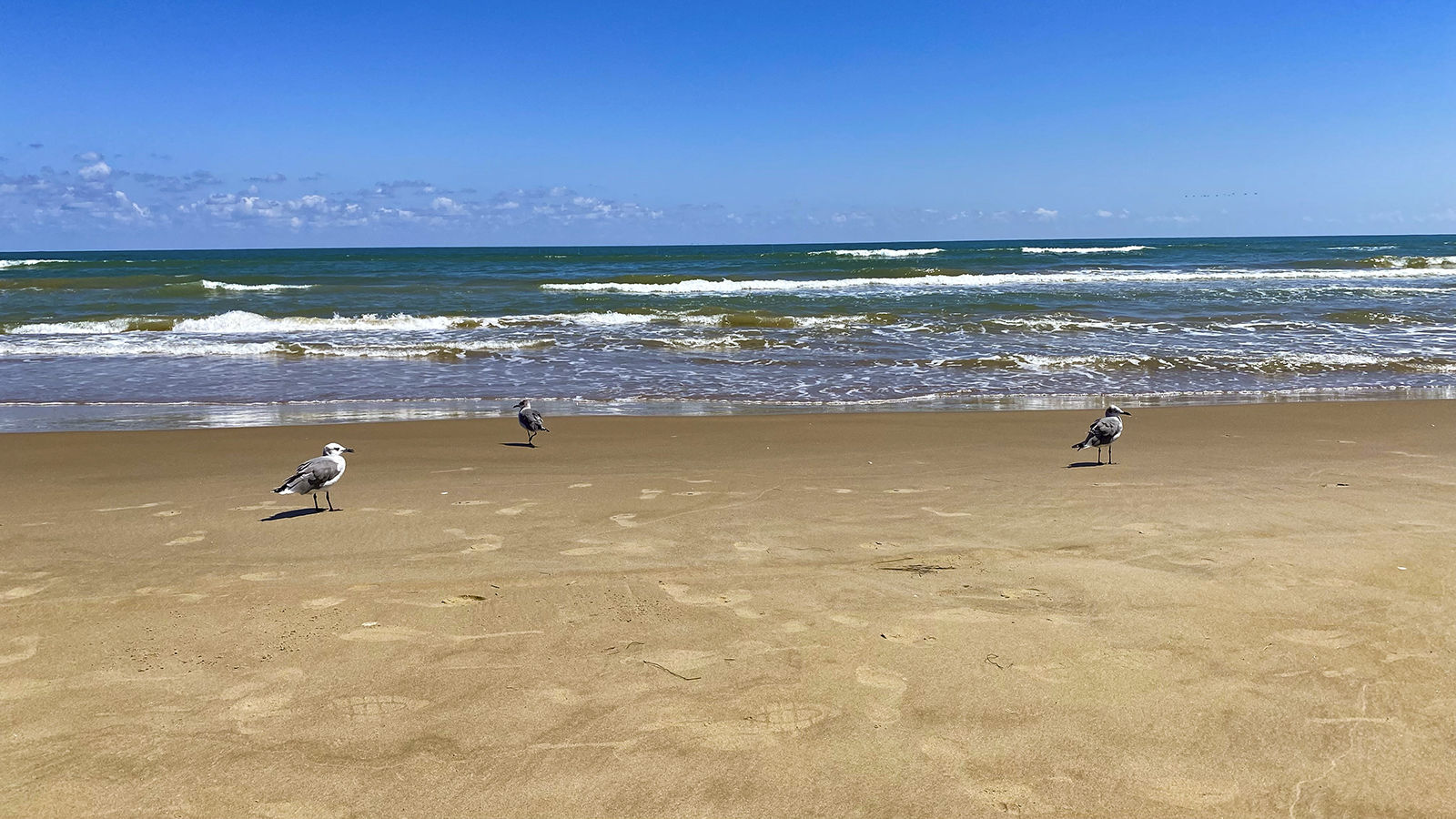 Ein paar Möwen rennen hier auf und ab um die ständig angeschwemmten kleinen Krabben zu ergattern.