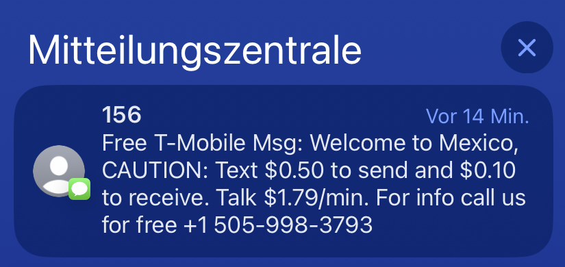 Nach ein paar Rundgängen um die Raketenanlage geht es dann zurück. Da wir hier in unmittelbarer Grenze zu Mexico sind, werde ich vom mexikanischen Handynetz begrüßt.
