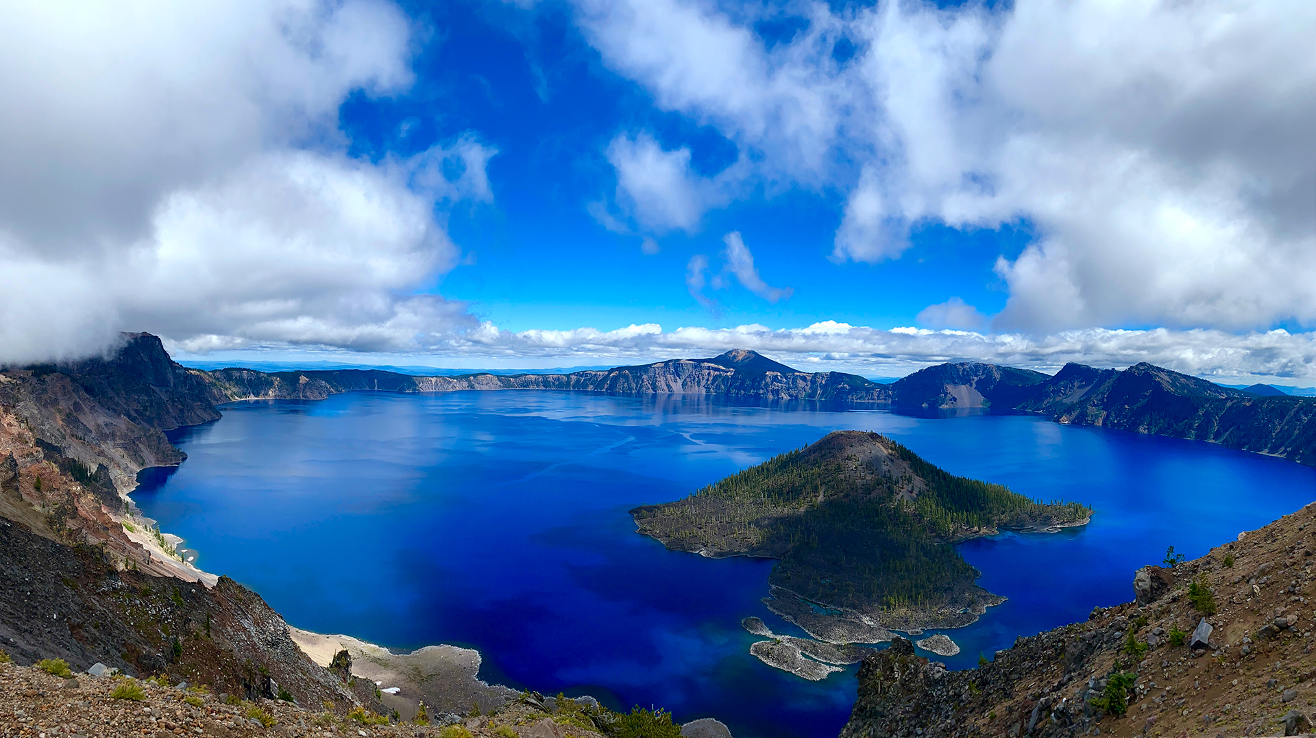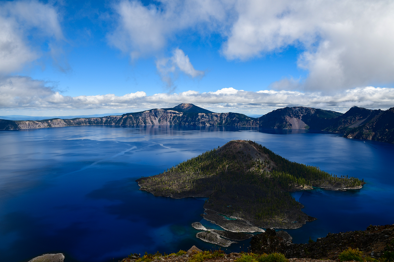 Crater Lake ist ein Kratersee des Vulkans Mount Mazama im Süden des Bundesstaates Oregon. Der See zeichnet sich durch seine ungewöhnlich tiefblaue Farbe aus. Der See entstand durch die Füllung der Caldera mit Regenwasser.