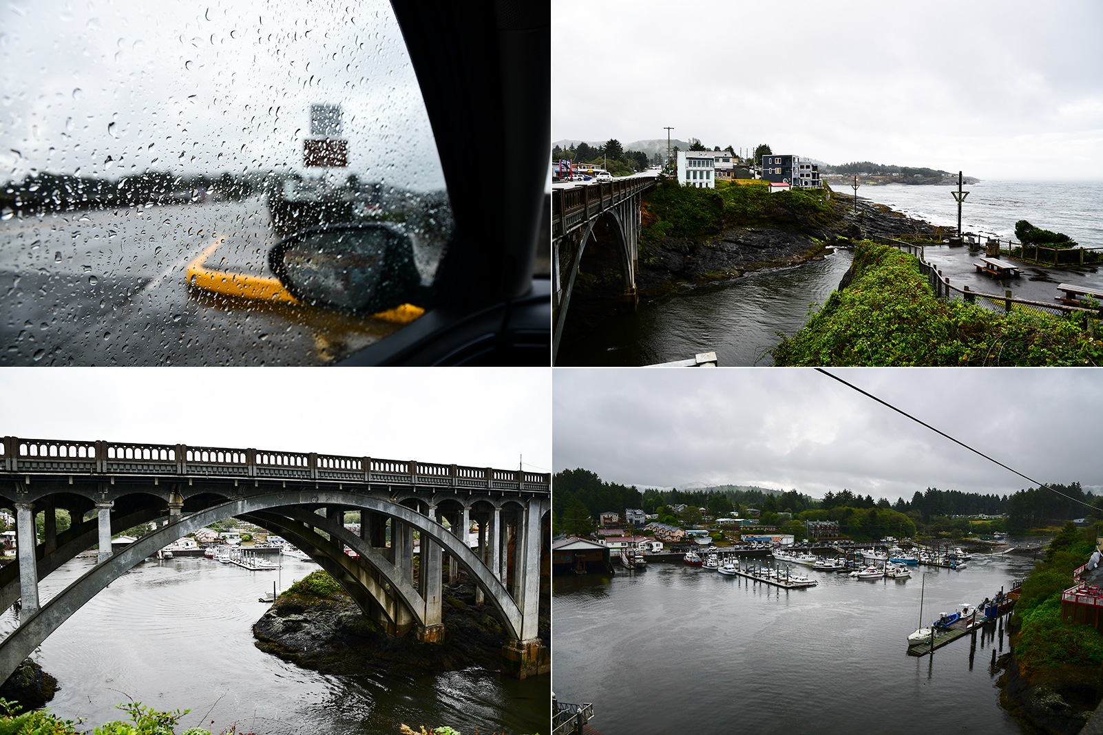 Wir schalten die Nachrichten ab und machen uns auf den Weg. Ein Stück wollen wir noch den Highway101 an der wilden Pazifikküste entlang. Es schüttet wie aus Eimern. Strandspaziergänge sind nur mit unserer Regenausrüstung möglich. Wir passieren unzählige weite Strände und kleine Küstenorte. Auch kommen wir am kleinsten Hafen der Welt vorbei. Als wir irgendwann bis auf die Knochen nass sind stellen wie die Außenausflüge ein.