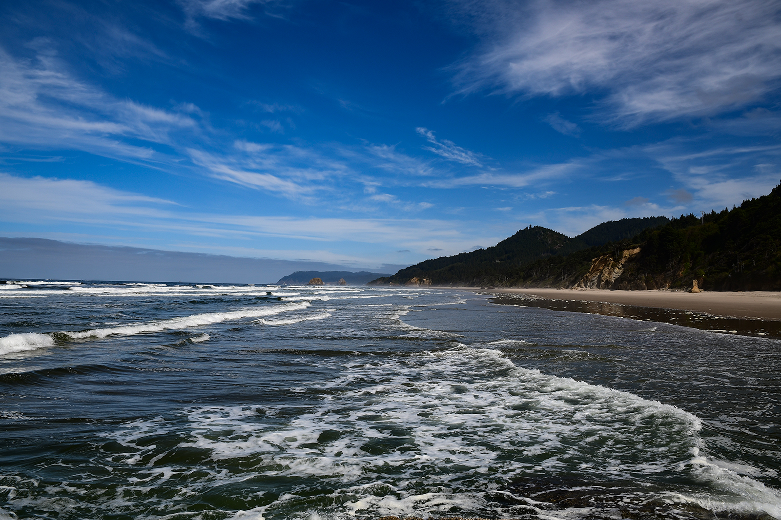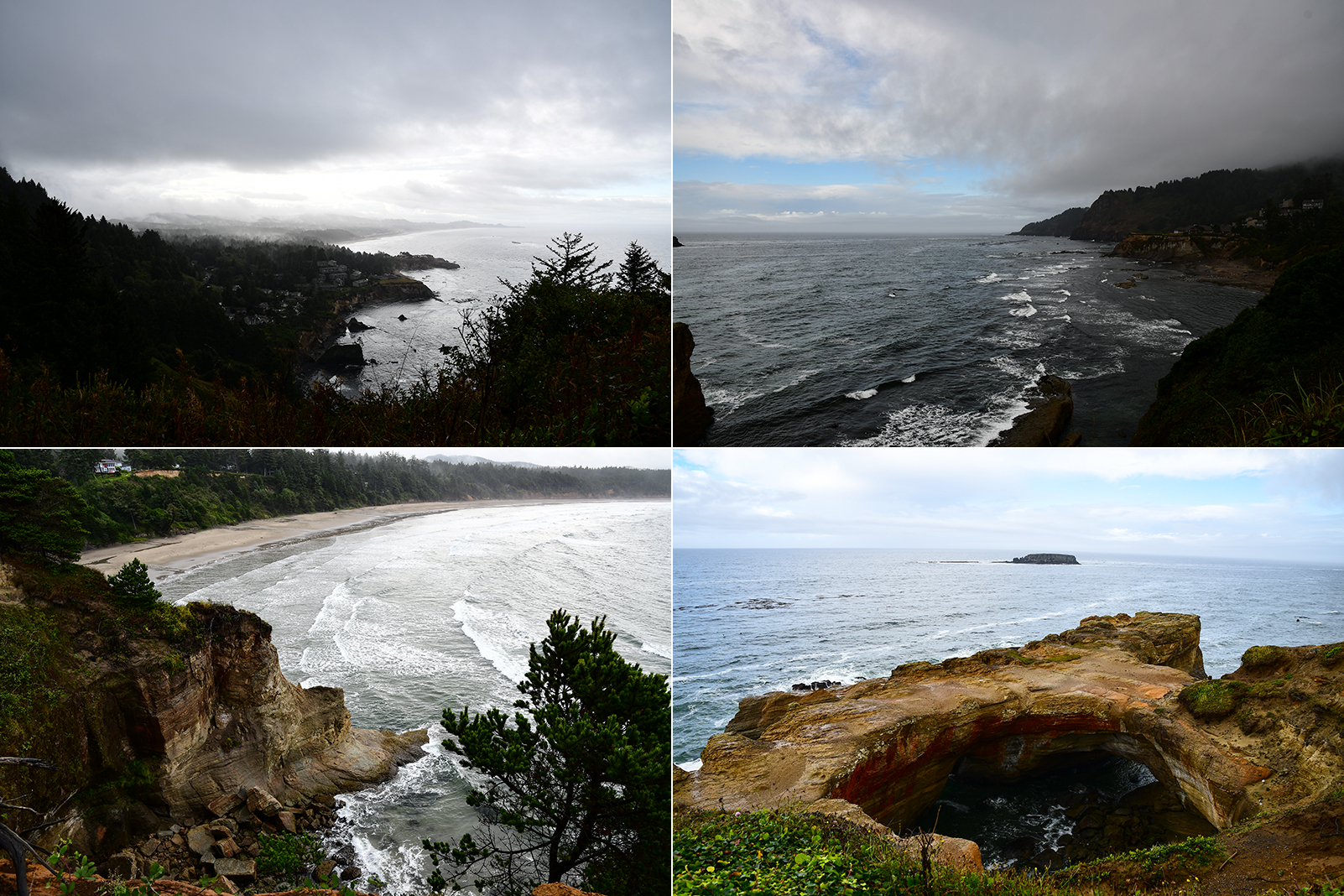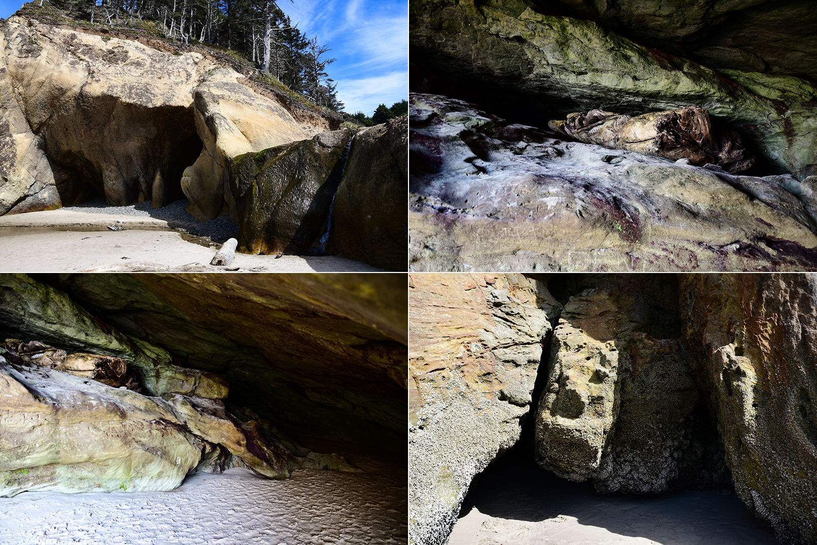 Plötzlich müssen wir doch schnell fliehen. Steigt das Wasser zu hoch gibt es hier kein Entrinnen mehr. Man kommt aus den Höhlen nicht mehr heraus – außer ertrunken vielleicht. Mit einer bereits nassen Jeans bis zum Knie(ein kleines Restrisiko ist an der wilden Pazifikküste immer mit dabei) geht es zurück zum sicheren Strand und weiter zu ein paar anderen Stränden hier am Highway 101.