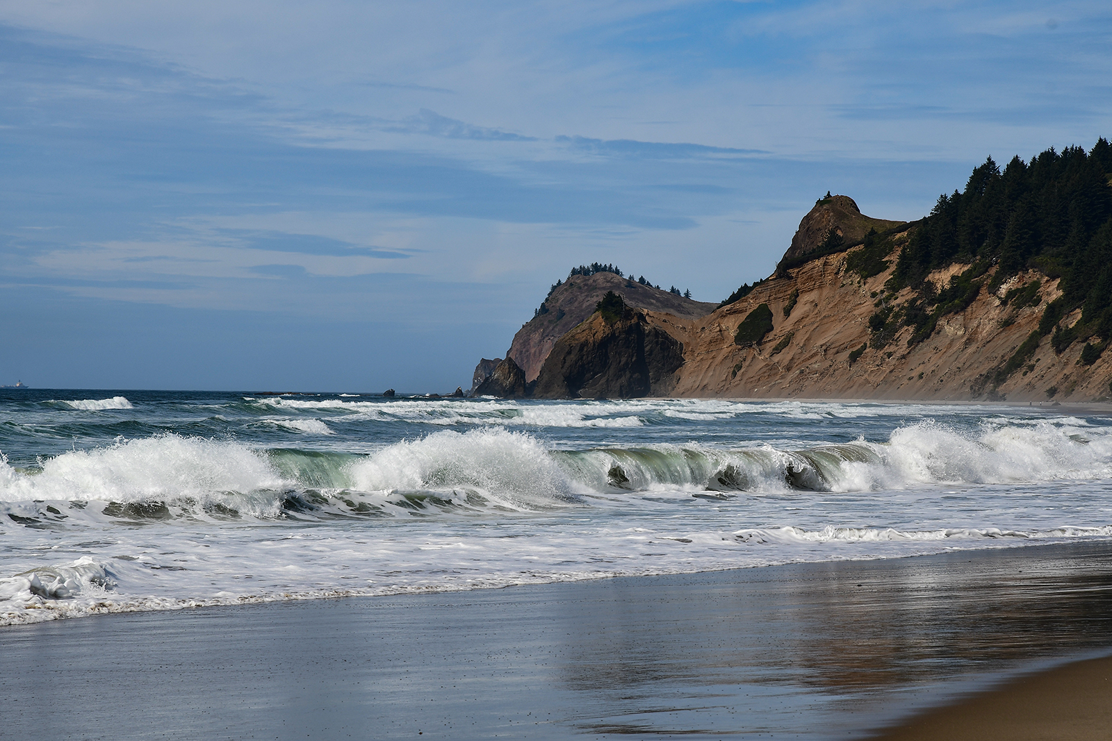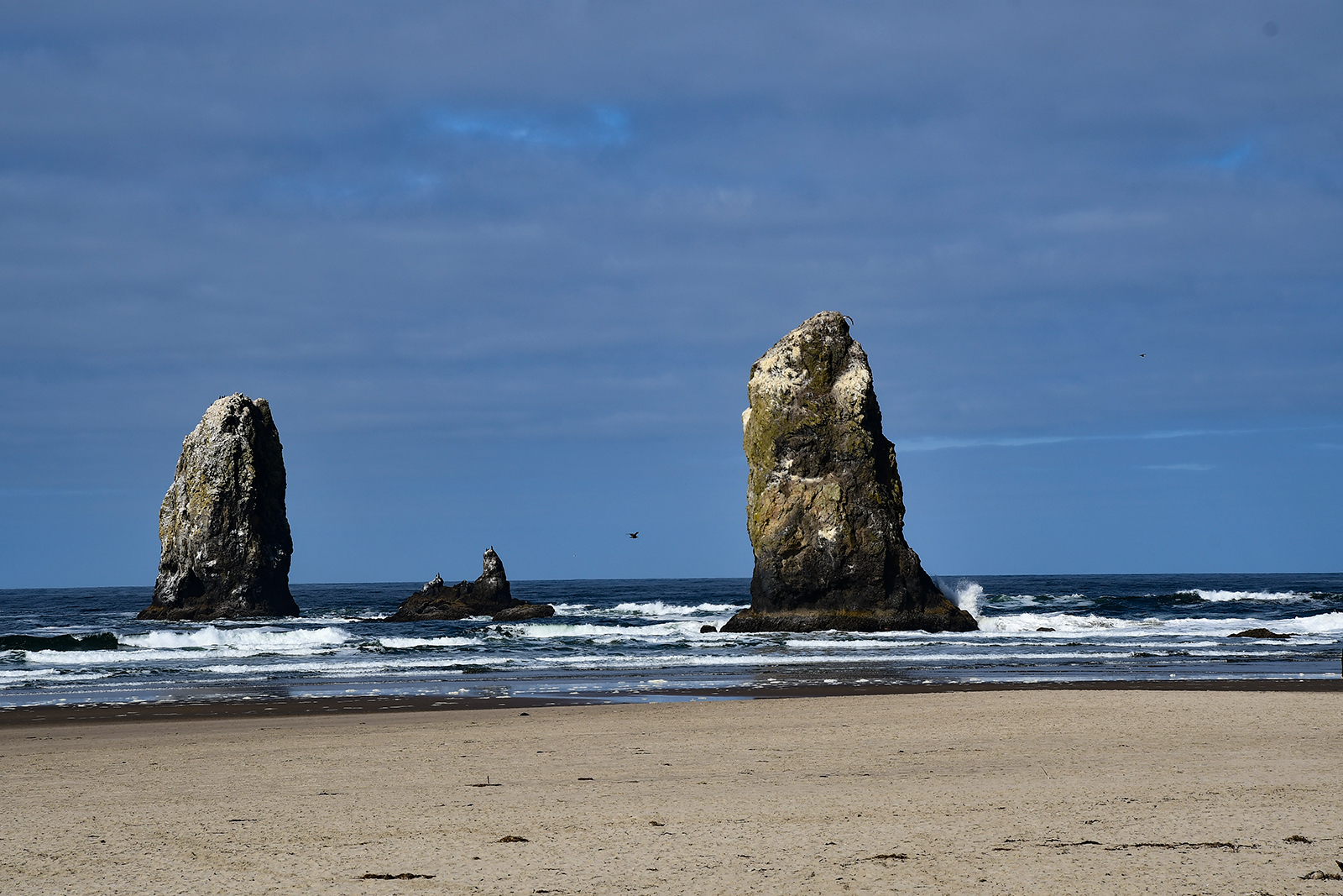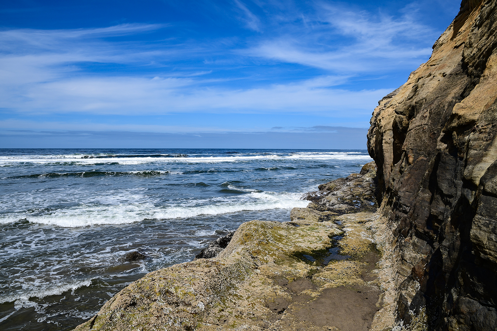 Plötzlich müssen wir doch schnell fliehen. Steigt das Wasser zu hoch gibt es hier kein Entrinnen mehr. Man kommt aus den Höhlen nicht mehr heraus – außer ertrunken vielleicht. Mit einer bereits nassen Jeans bis zum Knie(ein kleines Restrisiko ist an der wilden Pazifikküste immer mit dabei) geht es zurück zum sicheren Strand und weiter zu ein paar anderen Stränden hier am Highway 101.