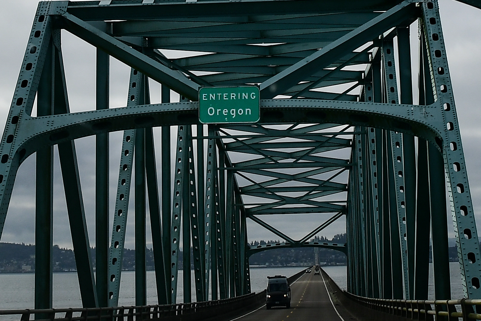 Früh am Morgen geht es los. Wir sind nach Oregon unterwegs. Es ist stark bewölkt, düster, kalt und feucht – wie oftmals hier im Bundesstaat Washington. Nach kurzer Zeit erreichen wir wieder die Astoria-Megler Bridge, die uns über den mächtigen Columbia River nach Oregon führt.