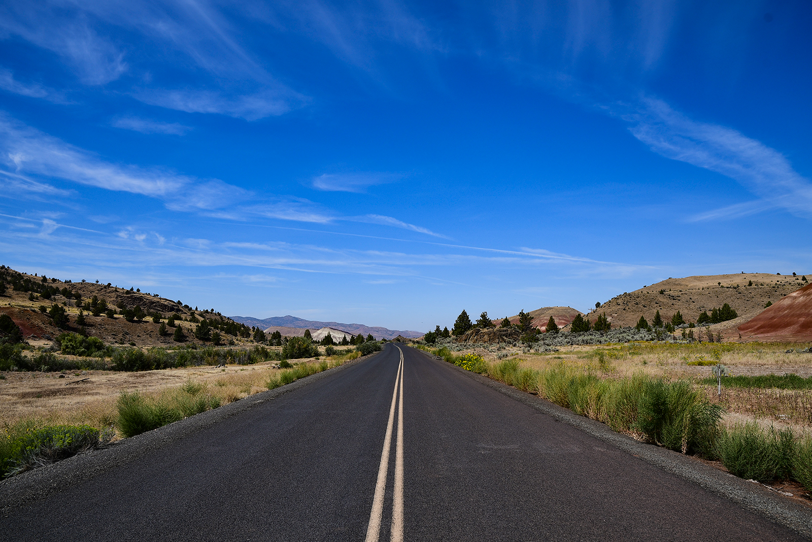 Es geht über Pässe die mehr als 1500 Meter hoch sind. Immer wieder Warnschilder „Achtung Rinder auf der Fahrbahn auf den nächsten 100Km. Dann wir die Landschaft hügelig und wir erreichen die Painted Hills.