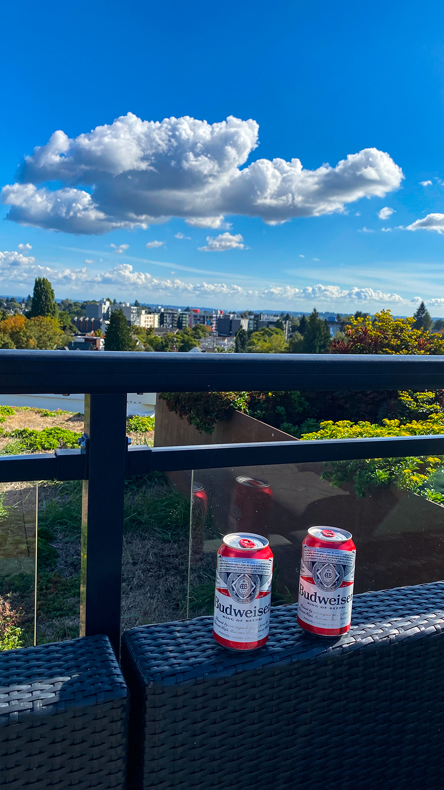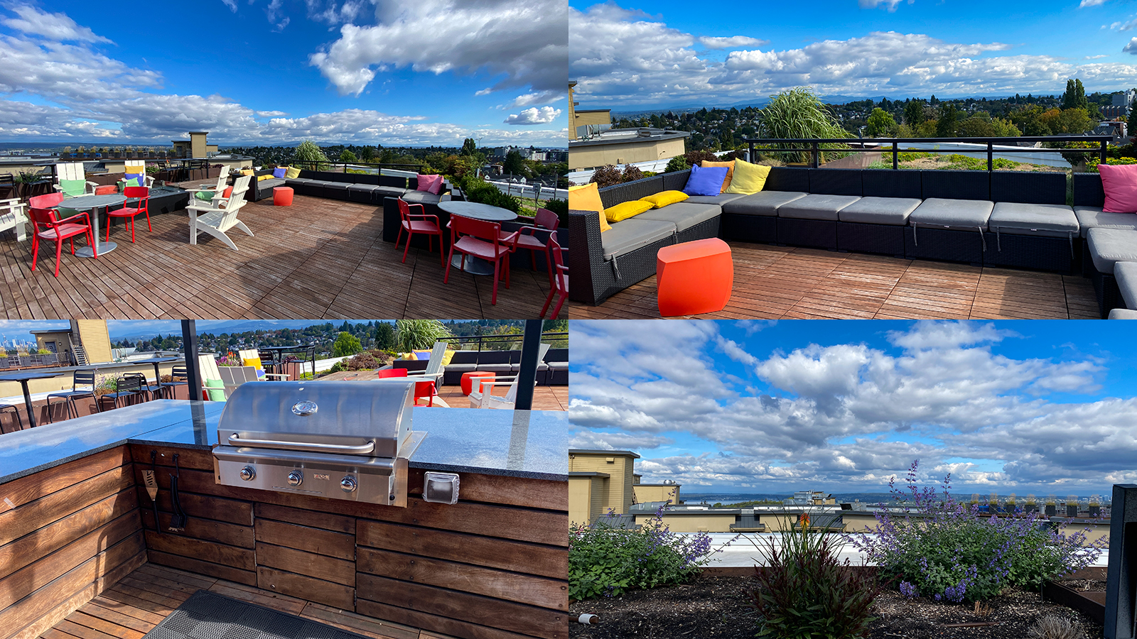 Für den ersten Tag in Seattle reicht es. Am späten Nachmittag chillen wir mit ein bis zwei Bier noch etwas auf der sonnigen und großzügigen Terrasse auf unserem Wohnblock und genießen den Ausblick.