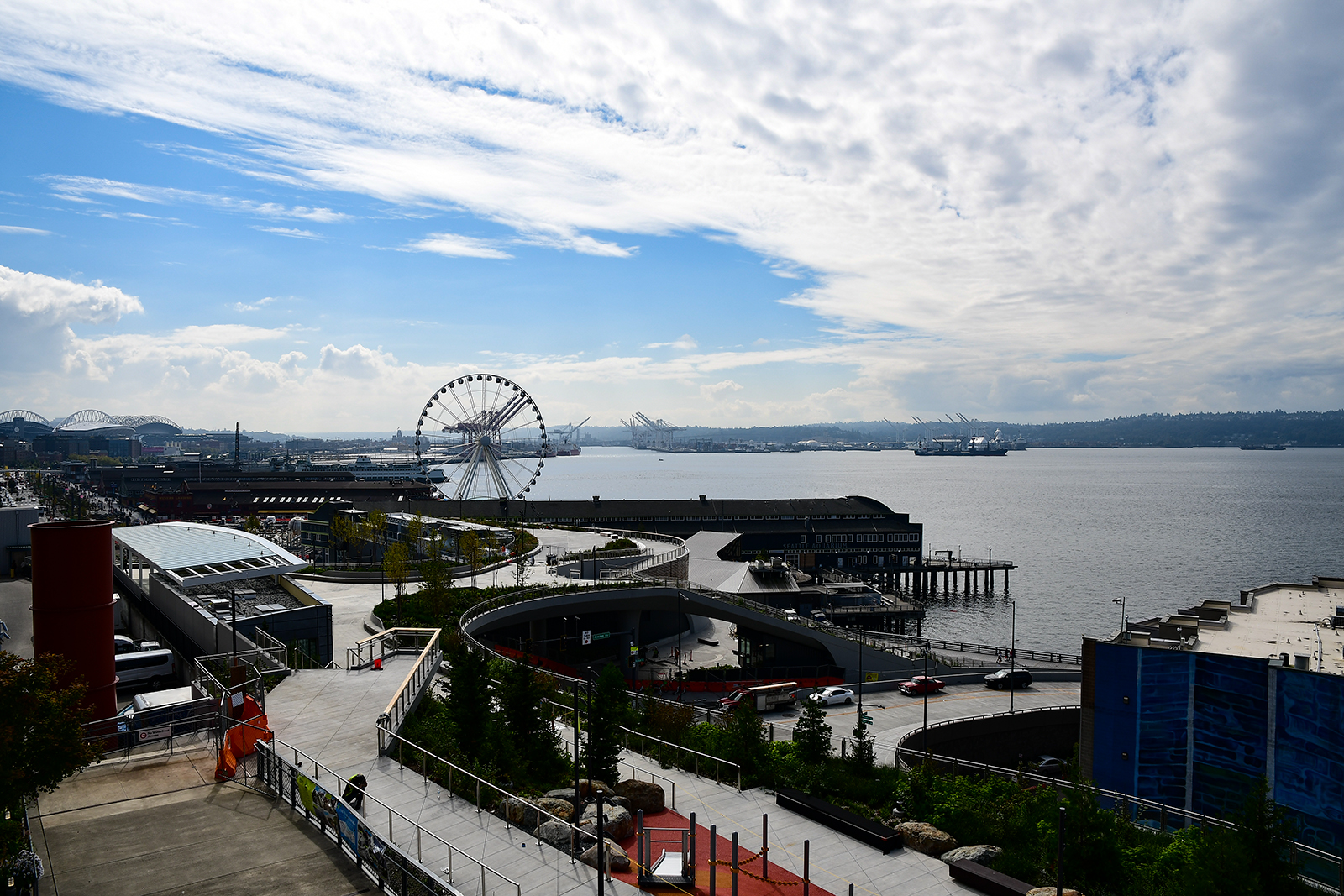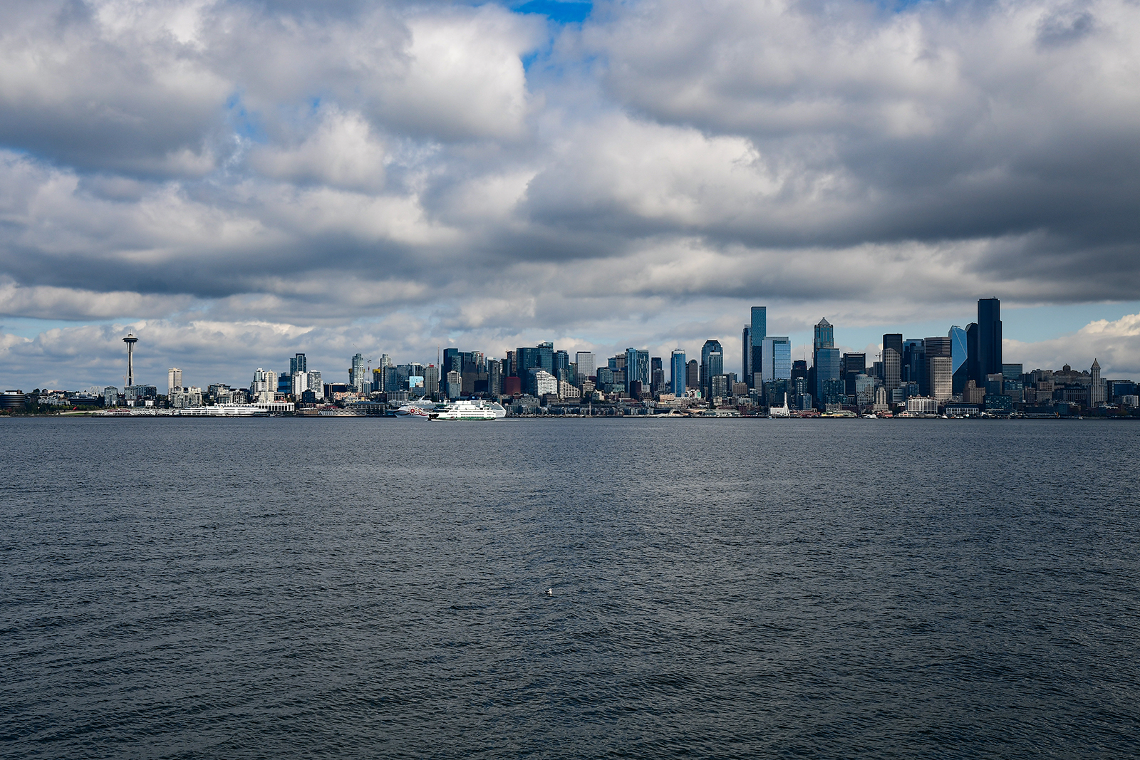 Nach dem Ausflug in meine Vergangenheit geht es weiter.. Es geht weiter zu einer Bucht gegenüber der Skyline von Seattle. Hier sitzen wir gefühlt ewig und beobachten alles um uns herum. Große Fähren durchqueren immer wieder die Bucht. Ab und zu tauchen Seelöwen aus dem Wasser auf und beäugen uns neugierig. Seemöwen ziehen kreischend ihre Bahnen über unsere Köpfe hinweg. Ich könnte ewig hier in der warmen Sonne sitzen und die Natur um mich herum beobachten. Die beeindruckende Skyline von Seattle trägt natürlich zu den unglaublichen Eindrücken bei.