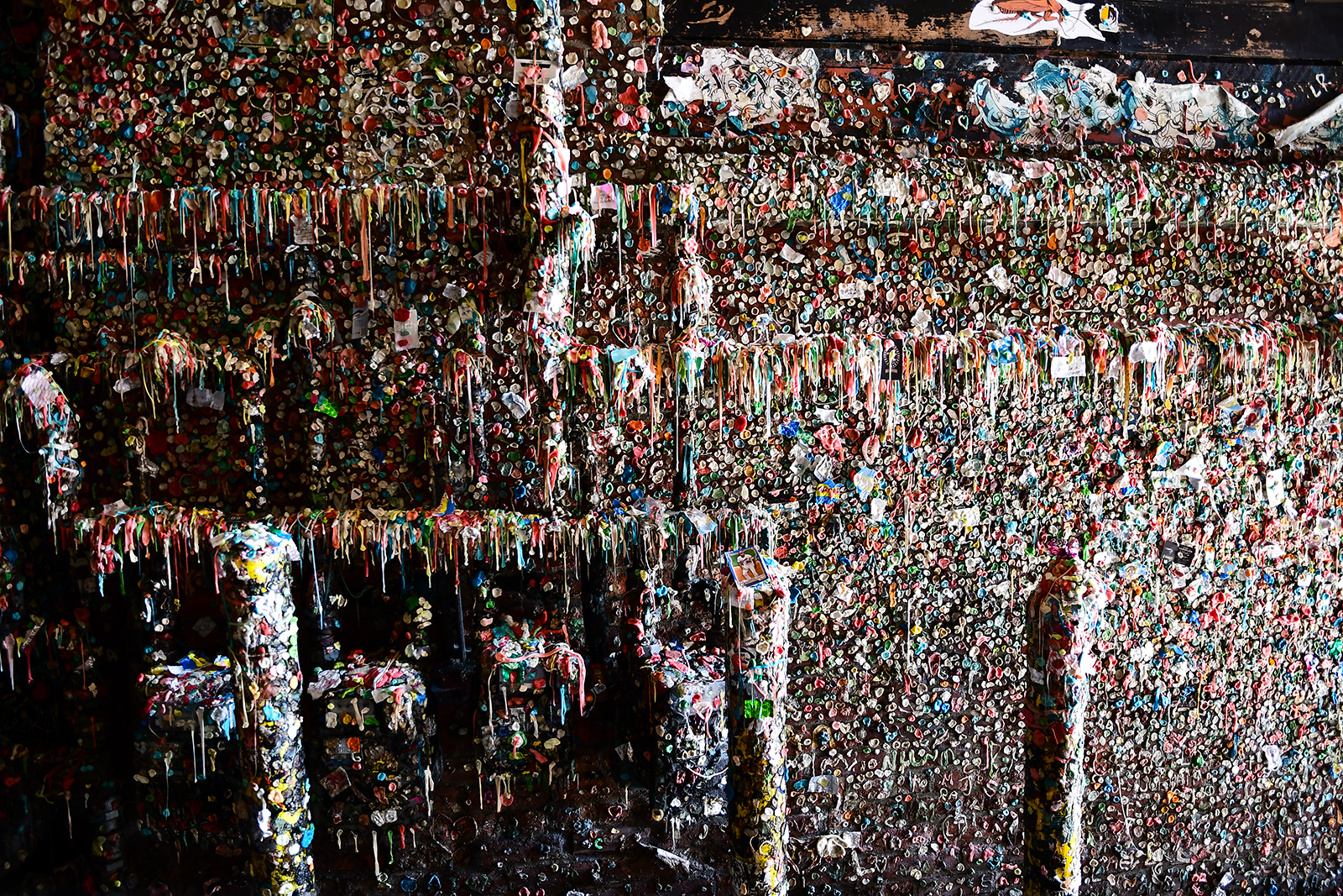 Dann erreichen wir die Gum-Wall also die Kaugummiwand. – Nein ich habe mich nicht verschrieben und wir stehen vor der Seattle Kaugummi Wand – die größte ihrer Art. In einer Seitengasse kleben Millionen Kaugummis an den Wänden. Was vor Jahren begann ist heute ein Volkssport bei Volltrottel-Influencern. Jeder der etwas auf sich hält muss einen Kaugummi kauen und an die Wand kleben. Etwas eklig ist das ganze schon – aber ich finde es lustig.