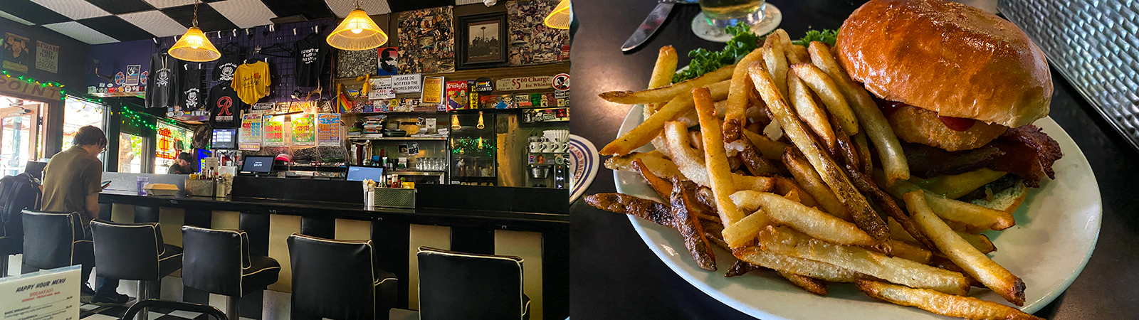 Uns plagt der Hunger und wir finden auf unserem Weg eine uralte, düstere Kneipe aus dem Jahr 1929. Auf der Speisekarte des „5 Point Cafe“ steht in großen Buchstaben „Alkoholiker servieren hier Alkohol seit 1929“ – hier sind wir richtig.
