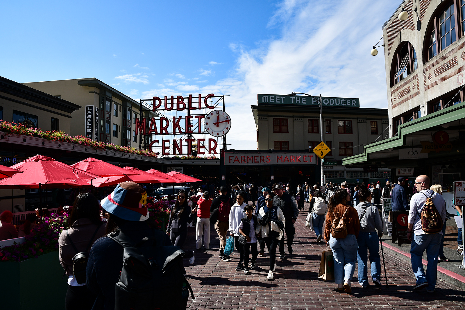 Weiter geht es natürlich zum großen Markt von Seattle. Früher ein echter Markt auf dem sich die Einwohner mit dem Nötigsten versorgten. Heute eher ein Touristenrummel. Hier gibt es alles was man sich vorstellen kann und alles was man sich nicht vorstellen kann – natürlich zu horrenden Preisen. Es ist voll, die Touristen schieben sich durch diesen geschichtsträchtigen Ort.